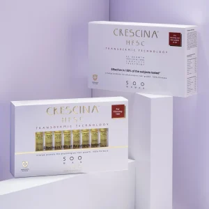 علبة كريشينا 500 (20 أمبولة إعادة النمو فقط): مركّز فعّال لتعزيز عملية نمو الشعر من جديد، مثالي لمن يعاني من فراغات واضحة أو بطء في نمو الشعر.